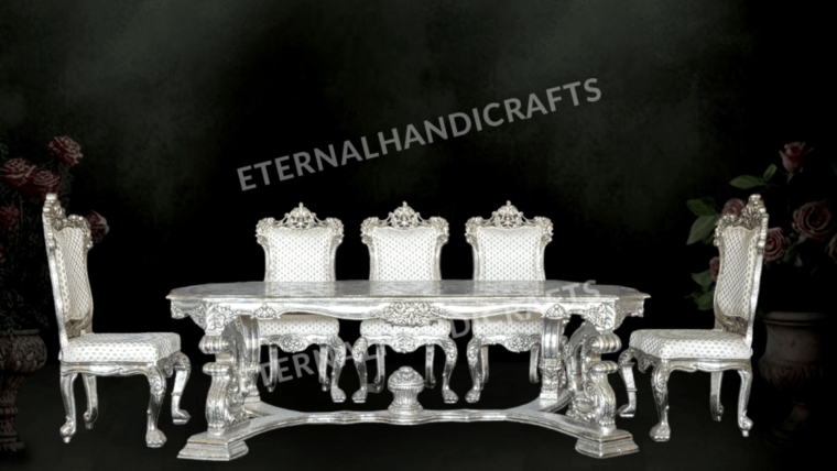 Silver dining table set | Silver Furniture | Eternal Handicrafts Silver Dining table | Eternal Handicrafts Silver chair and table | Eternal Handicrafts Silver table and chair | Eternal Handicrafts Silver temple and god idols | Eternal Handicrafts