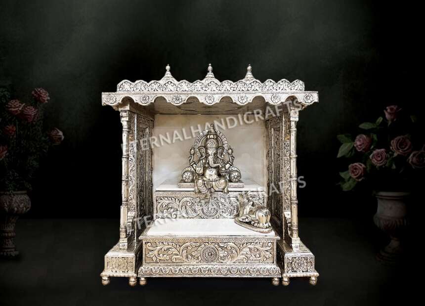 A German silver temple represents the sacred union of traditional Indian devotion and exceptional craftsmanship. Revered for its radiant finish, intricate detailing, and lasting durability, it serves as more than just a place of worship—it becomes a centerpiece of cultural elegance. Whether installed in a luxurious residence, boutique showroom, or spiritual space abroad, a German silver temple for home from Eternal Handicrafts adds unmatched grace and serenity to any environment.